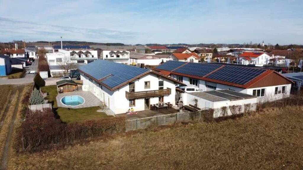 Es ist mit seinen fast 170 m² Wohnfläche reichlich Platz für eine Familie. Im Erdgeschoß befindet sich ein Gäste-WC und der Küchen- Ess- & Wohnbereich. Ein Schwedenofen sorgt für zusätzliche Wärme. Vom Wohnzimmer aus kommt man in den Gewerbebereich, der zuvor als KFZ Werkstatt genutzt wurde, angrenzend ein Büro mit 2 Toiletten und Dusche. Dies könnte man ggf. als Privatraum nutzen, da hier auch nochmal eine Tür zum Pool in den Garten führt. Im Obergeschoß sind 1 Bad mit Wanne und Dusche, 3 Schlafzimmer und ein weiterer Raum, zuvor als Ankleidezimmer genutzt. Das Haus ist vollunterkellert (nur der Wohnbereich, Halle nicht). Ein Hobbykeller mit Bar ist vorhanden, dieser ist auch über einen separaten Eingang nutzbar. Angrenzend sind ein zweiter Kellerraum und der Heizungs- und Stromraum.