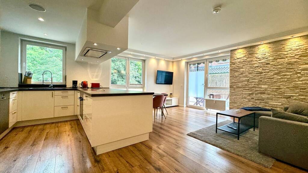 Diese hochwertig sanierte Eigentumswohnung im 1. Obergeschoss eines gepflegten Mehrfamilienhauses aus dem Jahr 2005 vereint moderne Technik, stilvolle Ausstattung und eine durchdachte Raumaufteilung. Die 2015 umfassend modernisierte Wohnung überzeugt durch zeitlose Eleganz, hochwertige Materialien und ein stimmiges Lichtkonzept.