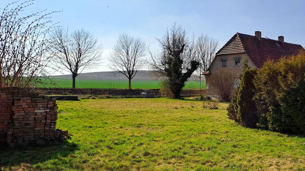- Eine vorhandene, gut erhaltene, klassische Doppelhaushälfte (leer, Baujahr 1910, Wohnfläche 95 m² + 45 m² Nutzfläche), in Ecklage des Grundstücks, kann vielseitig genutzt werden, sofort (z. B. als Sommerhaus) oder später beim Neubau als Unterkunft für Handwerker etc.