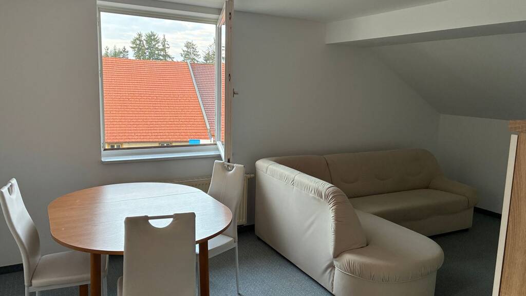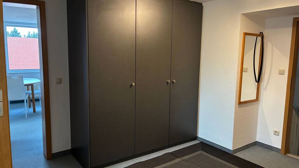 Wir vermieten unsere 2-Zimmer Einliegerwohnung im Dachgeschoss mit Wohnküche, Schlafzimmer, Bad mit Badewanne, kleinem Büro und zwei Abstellräumen. Dabei ist ein Waschraum im Keller mit weiteren Abstellmöglichkeiten. Im Außenbereich befindet sich eine kleine Terrasse, eine Garage und ein Stellplatz. Wir bevorzugen Nichtraucher und keine großen Tiere. Die Wohnung ist nur für Singles oder Paare geeignet.