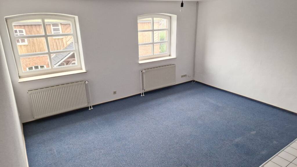 Die Aufteilung der hellen, freundlichen Wohnung im 1. Stock eignet sich vorzüglich, um sich ein attraktives Zuhause zu schaffen. Seine Gemütlichkeit und das ländliche Flair erlangt sie durch die Stichbogen-Sprossenfenster und die Kiefer-Landhaustüren. Individuelle Einrichtungswünsche können in der Wohnküche mit ihrer hellen Einbauküche verwirklicht werden. Der Herd (Backofen mit Heißluft und Ceranfeld mit Bräterzone) ist neu. Rechts neben die EBK kann ein 45cm-Geschirrspüler gestellt werden. Die zwei weiteren Zimmer lassen sich wahlweise als Schlaf-, Kinder- oder Bürozimmer nutzen. Zu einem Entspannungsbad lädt das Vollbad ein. Neben einem separat gelegenen, extra großen Abstellraum (für z.B. Fahrräder) befindet sich in der Wohnung zusätzlich noch eine kleine Vorrats- und Abstellkammer. Die kompletten 56 m2 sind mit Teppichboden versehen (außer das Bad ist gefliest).