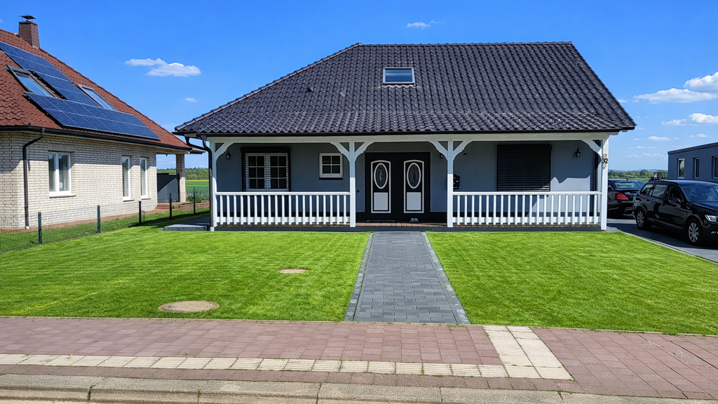 Willkommen in Ihrem neuen Zuhause! Dieses charmante Einfamilienhaus im Landhausstil besticht durch einen offenen und großzügigen Grundriss sowie durch einen unverbaubaren Blick auf die umliegende Natur. Erdgeschoss: Beim Betreten des Hauses empfängt Sie ein einladender und lichtdurchfluteter Eingangsbereich. Das Wohnzimmer ist der perfekte Ort zum Entspannen – besonders an kühlen Abenden, wenn der gemütliche Kamin für behagliche Wärme sorgt. Angrenzend liegt die halboffene, landhäusliche Küche mit rustikaler Theke. Das Erdgeschoss bietet zudem einen praktischen Hauswirtschaftsraum, ein Bad mit begehbarer Dusche und freistehender Badewanne, ein Gäste-WC und drei vielseitig nutzbare Zimmer, die als Schlaf-, Arbeits- oder Kinderzimmer gestaltet werden können. Obergeschoss: Der helle Treppenaufgang führt Sie hinauf in das 1. Obergeschoss, wo Sie drei weitere Zimmer erwarten. Diese Räume bieten Ihnen zusätzliche Gestaltungsmöglichkeiten, sei es als Schlafzimmer, Büro oder Hobbyraum. Außenbereich: Das Haus verfügt über eine Garage sowie viel Stellfläche für weitere Fahrzeuge. Die ruhige Lage, direkt angrenzend zur Natur, lädt zu Spaziergängen und Outdoor-Aktivitäten ein. Eine Bushaltestelle für Schulkinder befindet sich in unmittelbarer Nähe zur Straßenseite, was den Alltag besonders für Familien erleichtert. Hinweis zu den Fotos: Die aktuell eingestellten Bilder stammen noch aus der Bauphase. Das Haus ist selbstverständlich vollständig fertiggestellt und wurde bereits bewohnt. Der derzeitige Zustand entspricht einem komplett ausgebauten und bezugsfertigen Wohnhaus. Aktuelle Fotos werden zeitnah ergänzt. Machen Sie dieses Einfamilienhaus zu Ihrem neuen Zuhause und genießen Sie das harmonische Zusammenspiel von komfortablem Wohnraum und idyllischer Naturnähe. Das Einfamilienhaus liegt durch seine hervorragende Lage am Ortsrand, eingebettet in eine idyllische Naturlandschaft. Hier genießen Sie die Ruhe und Schönheit der Natur direkt vor Ihrer Haustür. Perfekt für entspannte Spaziergänge oder sportliche Aktivitäten im Freien. Trotz der ruhigen Lage müssen Sie auf eine gute Anbindung nicht verzichten. Die direkt anliegende Bushaltestelle bietet ihren Kindern eine ausgezeichnete Verbindung zur Grundschule und zum Gymnasium in Bad Essen. Hier finden Sie die perfekte Kombination aus naturnahem Wohnen und schnellem erreichen des Zentrums - ideal für Familien und Naturliebhaber!