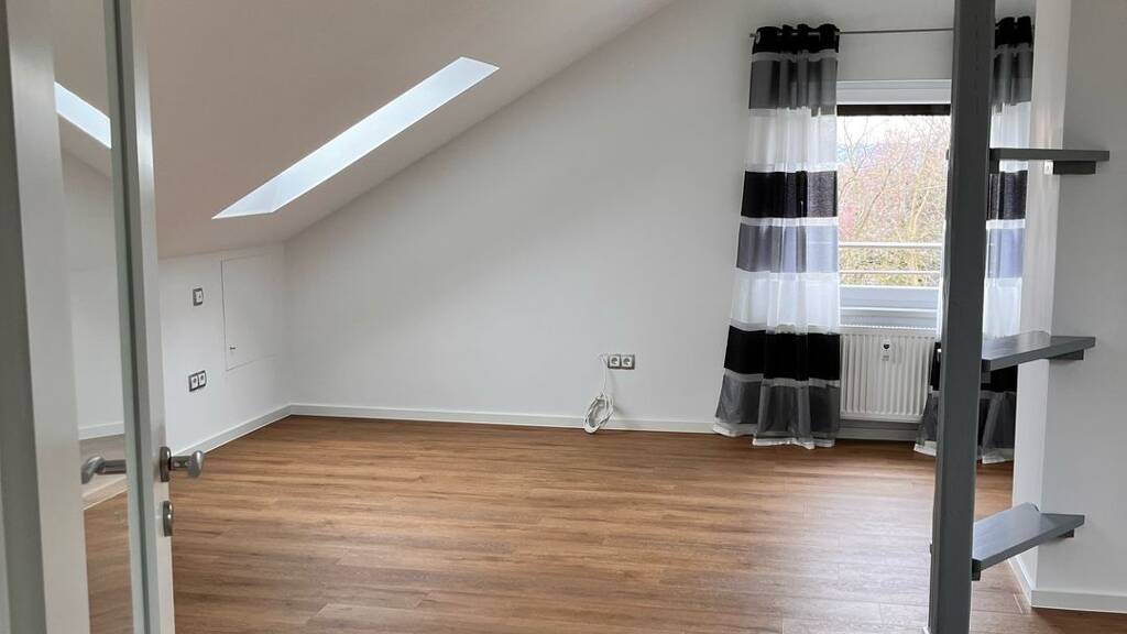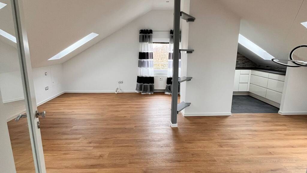 Wohlfühlwohnung! Im ersten OG erwartet Sie eine neuwertige, im Jahr 2018 umfangreich geschmackvoll renovierte und modern gestaltete 2,5 Dachgeschoß-wohnung. Der großzügige offene Wohn-Essbereich mit geöffneter aber etwas separierter Küche in welche bereits eine in hell gehaltene, zeitlose EBK integriert ist. Den Grundriss bilden weiterhin das geräumige Schlafzimmer (mit Weitblick), ein kleineres Kinder-Gäste-Arbeitszimmer und das großzügige Duschbad. Ein Abstellraum steht Ihnen auf dieser Etage ebenfalls zur Verfügung. Ideal ist die Wohnung für den anspruchsvollen Single oder das Paar. An Nichtraucher. Keine Haustiere erwünscht.
