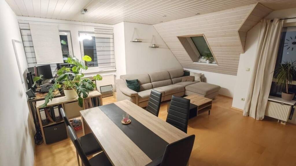 Diese stilvolle und lichtdurchflutete 3-Zimmer-Dachgeschosswohnung mit ca. 68 m² Wohnfläche befindet sich in einem gepflegten Mehrfamilienhaus mit nur 6 Wohneinheiten und überzeugt durch ihre ruhige sowie angenehme Wohnlage. Ein besonderes Highlight ist der sonnige Balkon mit beeindruckendem Blick auf die Wörnitz und die Burg, der ein außergewöhnliches Wohngefühl bietet. Die neuen Dachfenster sorgen für viel Tageslicht und eine helle, freundliche Atmosphäre in allen Räumen. Die Wohnung verfügt über eine durchdachte Raumaufteilung und bietet ein harmonisches Zusammenspiel aus Komfort und Gemütlichkeit. Eine Einbauküche ist vorhanden und kann auf Wunsch übernommen werden. Ausstattung & Highlights: • ca. 68 m² Wohnfläche • 3 Zimmer • Balkon mit Burg- und Wörnitzblick • neue Dachfenster • Einbauküche (Übernahme möglich) • eigener Kellerraum • Garage sowie zusätzlicher Stellplatz( +70€) • kleines, gepflegtes Mehrfamilienhaus (nur 6 Parteien) Lage: Die Wohnung befindet sich in 86655 in einer attraktiven Wohngegend. Einkaufsmöglichkeiten sowie Einrichtungen des täglichen Bedarfs sind schnell erreichbar. Warmmiete: 990 € (inkl. Garage & Stellplatz) Diese Wohnung vereint Ausblick, Ruhe und Wohnqualität auf besonders ansprechende Weise. Wir freuen uns auf Ihre Anfrage.