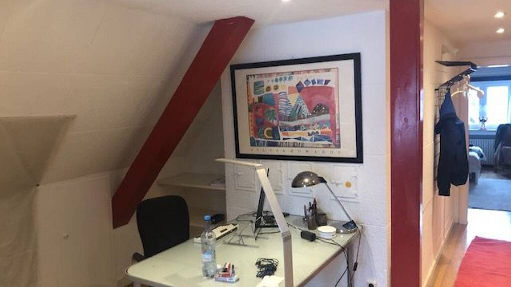 Unsere WG befindet sich in einer ruhigen und friedlichen Gegend, nahe zum Benrather Einkaufszentrum, Schloß Benrath und Bahnhof. In unserem Einfamilienhaus werden 1,5 Zimmer im Dachgeschoss mit eigenem Bad frei. Küche und Toilette sind auf der ersten Etage zur Mitbenutzung. Eine Zimmertüre schließt diesen Wohnbereich vom sonstigen Treppenhaus ab. Das Zimmer ist möbliert mit einem 140 x 200 Bett, einem Schlafsofa, Sesseln, Fernseher, Kommode Lampen. Das Bad hat ein kleines Fenster, ein Waschbecken und eine Badewanne und ist frisch renoviert. Im Flur, der ebenfalls frisch gestrichen ist, gibt es große Einbauschränke mit viel Stauraum und eine Garderobe. Außerdem ist hier ein gemütlicher Arbeitsplatz mit Schreibtisch und Regalen. Eine Etage tiefer befindet sich eine voll eingerichtete Küche mit Esstisch für 4 Leute, die gemeinsam mit zwei anderen Mitbewohnern genutzt wird.
