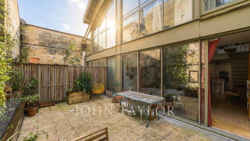 Le cour du bien est constitué d'un loft en duplex d'environ 110 m², aux volumes généreux et à l'atmosphère résolument confidentielle. Les espaces de réception s'ouvrent harmonieusement sur plusieurs extérieurs privatifs - terrasse, patio et tropézienne - offrant un confort de vie rare en hypercentre bordelais.