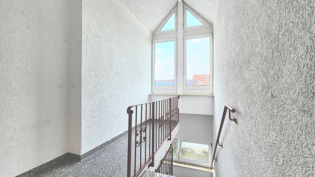 Stauraum ist sowohl innerhalb der Wohnung durch clever genutzte Dachschrägen als auch im Untergeschoss vorhanden. Ein großer, abschließbarer Kellerraum mit Licht und Steckdose bietet deutlich mehr als reine Abstellfläche. Zusätzlich steht den Bewohnern eine Gemeinschaftswaschküche mit Ablufttrockneranschluss zur Verfügung. Das Gebäude verfügt über einen Vollwärmeschutz.