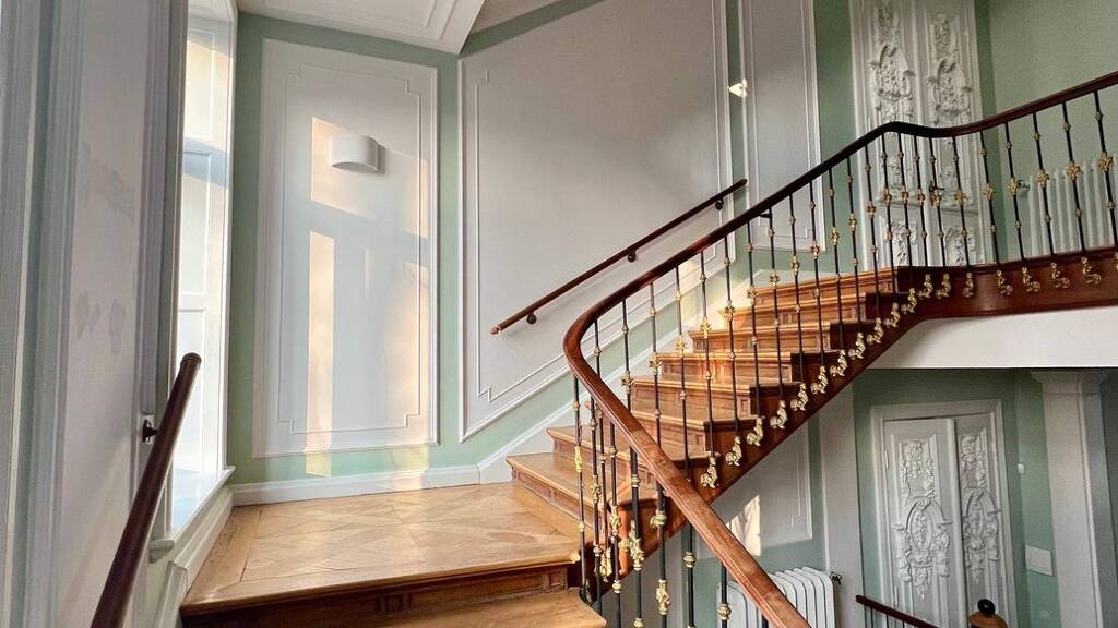 Insgesamt stehen 21 Zimmer zur Verfügung – sechs Badezimmer, drei Gäste-WCs sowie drei Küchen. Die Decken im Erdgeschoss erreichen eine Höhe von nahezu vier Metern, was in Kombination mit den lichtdurchfluteten Räumen ein repräsentatives und einladendes Wohngefühl schafft. Die Räume im Dachgeschoss, die mit separatem Duschbad im Jahr 2018 ausgebaut wurden, strahlen eine besondere Gemütlichkeit aus. Architektonisch reizvoll ist ebenfalls das Untergeschoss, das auf einer Seite ebenerdig ist und mit seinem markanten Tonnengewölbe sowie den hohen Decken vielfältige Nutzungsmöglichkeiten eröffnet.