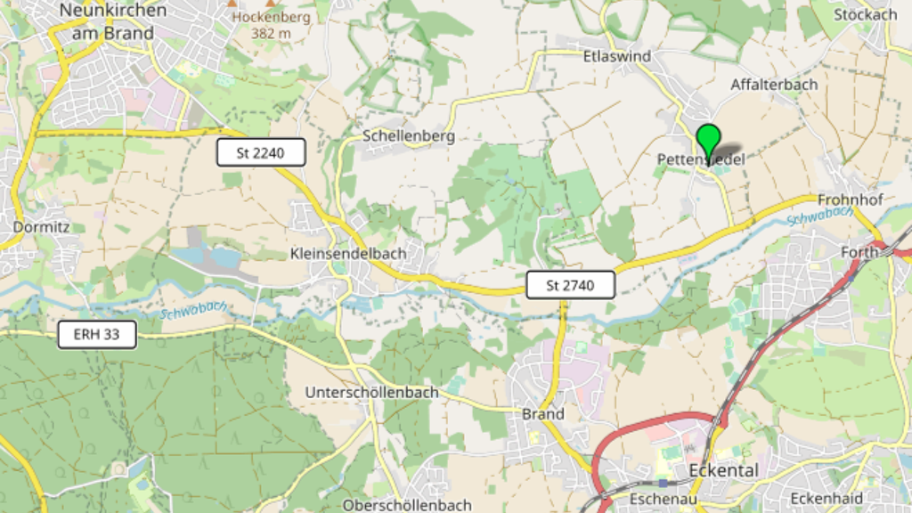 Das Objekt liegt gut erreichbar im direkten Einzugsgebiet von z. B. Eckental (ca. 5 Minuten), Gräfenberg (ca. 10 Minuten) oder Nürnberg Nord/Ost (ca. 15 Minuten).