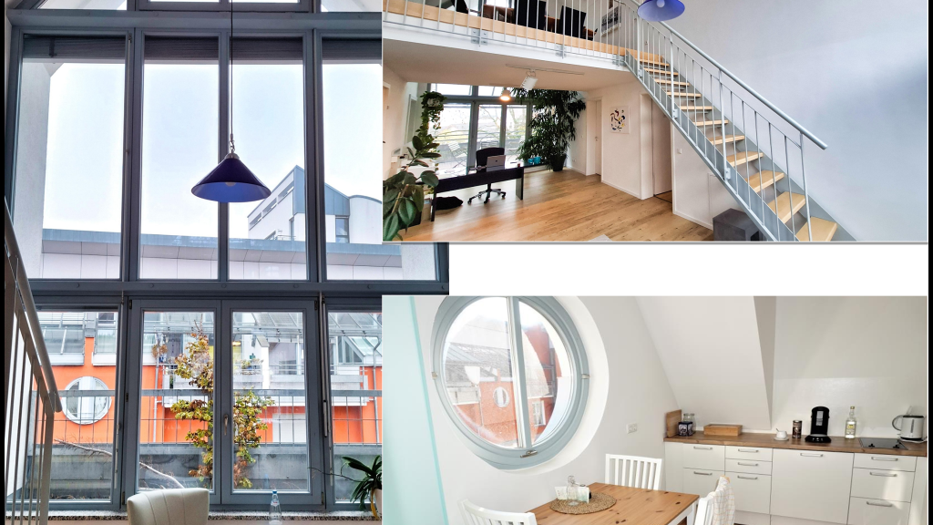 TOP: auch Wohnen und Arbeiten möglich TOP: mit extra Galerie und Loggia TOP: sehr große Panoramafenster TOP: wunderbare Zentrale Lage, fußläufig gut zu erreichen. TOP: extra Küche mit Einbauküche TOP: ein WC mit Dusche TOP: natürlich mit Parkettboden, Netzwerk, TOP: zwei TG-Stpl. für je 75.-EUR mtl. möglich.
