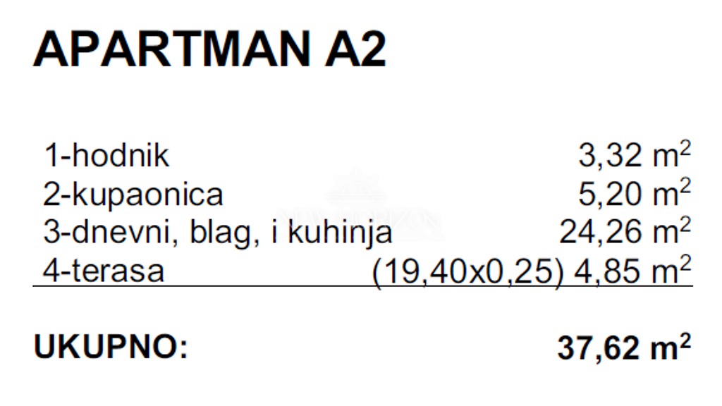 1 - hallway - 3.32 mbathroom - 5.20 mliving room with kitchen and dining room - mterrace (19.40xm2
