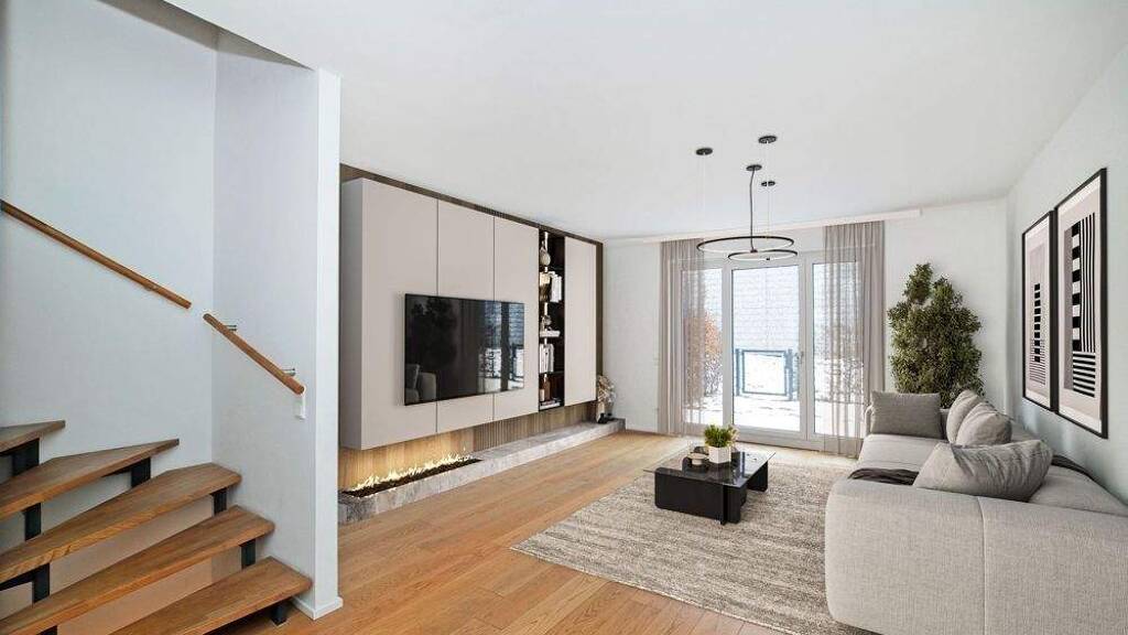 Der offene Wohn- und Essbereich bietet direkten Zugang zur Terrasse und dem pflegeleichten Garten - ideal für Familienzeit und gesellige Stunden. Im Dachgeschoss ergänzt eine verglaste Loggia / ein Balkon den Wohnraum und bietet einen geschützten Rückzugsort.