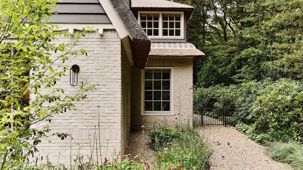 in one of bergen's most sought-after residential areas, directly opposite the famous oude hof and the local cinema, de zwarte schuur. the berger bos on the other side of eeuwigelaan and a short distance from the town centre, lies this impressive thatched villa with a separate holiday home.