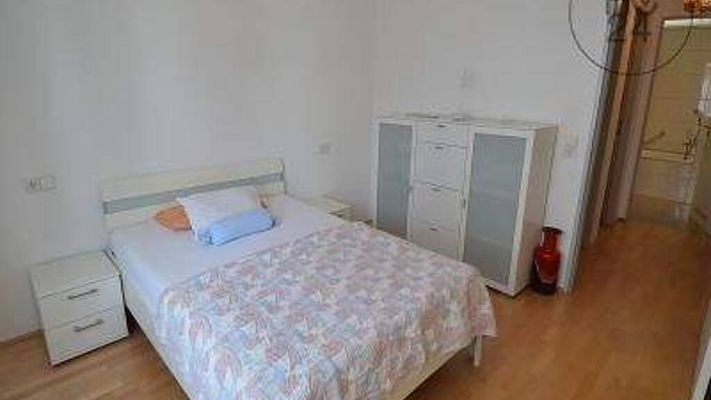 Das Schlafzimmer ist mit einem 1,60 m breiten Doppelbett, einem großen Kleiderschrank und einem Sideboard eingerichtet. Im Gästezimmer stehen ein Einzelbett, ein Kleiderschrank und eine Kommode zur Verfügung.