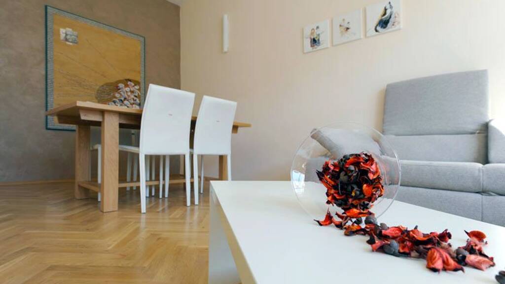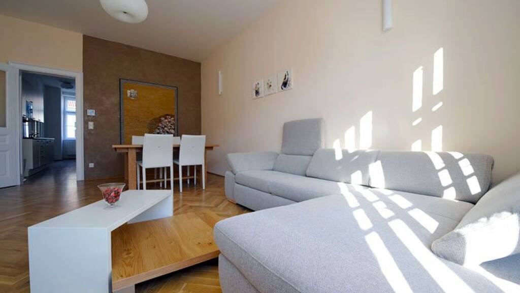 Das moderne und vollmöblierte Apartment mit einer Größe von 53m², verfügt über ein Schlafzimmer, ein Wohnzimmer, eine voll ausgestattete Küche, einen Vorraum, ein Bad (Badewanne und Waschmaschine) und ein WC.