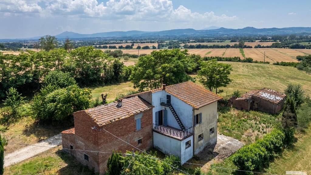 Inmitten der sanften Hügellandschaft der Toskana, nur etwa 20 Minuten von der charmanten Stadt Cortona entfernt, befindet sich dieser charaktervolle Casale in herrlicher Panoramalage. Das Anwesen bietet einen weiten Blick über das umliegende Tal und besticht durch seine ruhige, sonnige Lage – ideal für alle, die Ruhe, Natur und authentisches toskanisches Flair suchen. Das Hauptgebäude befindet sich in sanierungsbedürftigem Zustand und bietet somit vielfältige Gestaltungsmöglichkeiten für individuelle Wohnträume. Erste Renovierungsschritte sind bereits erfolgt – so wurden beispielsweise neue Fensterläden installiert. Die Raumstruktur erlaubt eine Aufteilung in zwei oder sogar drei separate Wohneinheiten, ideal für eine Kombination aus Eigenheim und Vermietung. Zusätzlich gibt es zwei Nebengebäude auf dem Grundstück, die sich ebenfalls zu Gästehäusern, Studios oder kleinen Ferienwohnungen umgestalten lassen. Ein traditioneller Holzofen unter dem Vordach lädt zu geselligen Abenden mit frisch gebackener Pizza oder Brot ein – ein authentisches Detail mit toskanischem Flair. Das Grundstück umfasst rund 3.000?m² und bietet reichlich Platz für Gartenanlagen, einen Pool oder kleinere landwirtschaftliche Nutzungen. Für die Wasserversorgung stehen sowohl ein eigener Brunnen als auch ein Anschluss an das öffentliche Wassernetz zur Verfügung – eine praktische Kombination für alle Bedürfnisse. Die Zufahrt erfolgt über eine interne, gepflasterte und bequeme Straße, die Privatsphäre und gleichzeitig einfachen Zugang garantiert. Insgesamt handelt es sich um ein großes Anwesen mit viel Potenzial. Ob als privates Refugium, Mehrfamilienhaus oder touristisches Projekt – dieser Casale bietet eine hervorragende Basis für ein Leben in der Toskana mit all seinen Vorzügen.