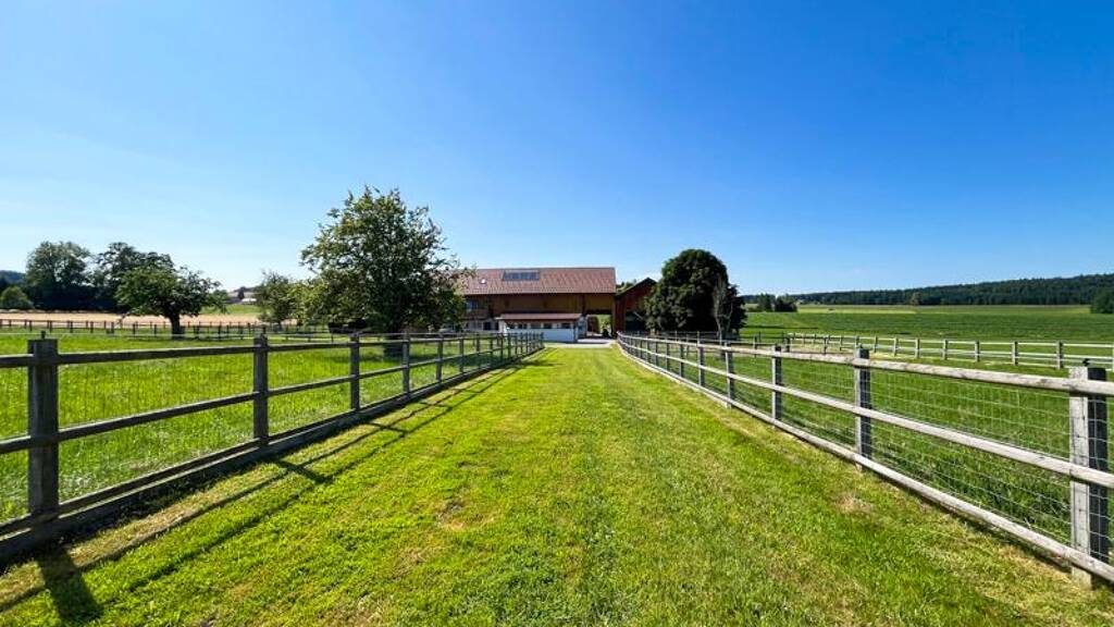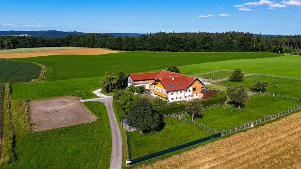 Wer je an einem Sommertag durch frisch geheute Wiesen spaziert ist, barfuß den warmen Boden spürte und diesen unverkennbaren Duft kennt - der kennt auch das Gefühl, angekommen zu sein. Genau DAS erwartet einen hier - eine schöne Zufahrt, gesäumt von saftigen Wiesen und goldgelben Feldern und an deren Ende: "A richtig liaber", sauber sanierter Dreiseithof in typischer Innviertler Bauweise ... eingebettet in rund 2 Hektar arrondiertes Land, umgeben von sanften Hügeln, Wäldern und einer wohltuenden Stille. Das tyische U-förmig angeordnete Ensemble aus Wohnhaus und Wirtschaftsgebäuden bildet eine Art Innenhof, der Schutz und Offenheit zugleich ausstrahlt. Außerdem ist dieser Bereich prädestiniert, einen ganz besonderen, charmanten Außenraum zu schaffen ... - ein Ort für "a spontanes Tratscherl", Sommerabende oder einfach nur Stille mit weitem Blick ins Grüne. Das Bauernhaus stammt aus etwa 1920. Seit ca. 2016 wurde mit Feingefühl reno-viert, modernisiert und erweitert - dabei entstanden Räume mit Charakter und Atmosphäre. Im Erdgeschoss wohnt das Alte weiter: zwei traditionelle Tischherde, eher niedrige Decken, typischen, rustikale Materialien - ländlich, warm und behaglich. In Ober- und Dachgeschoss dagegen überrascht eine moderne Leichtigkeit: Loftartige Räume, Sichtdachstühle, viel Licht und Luft - ein spannendes Zusammenspiel aus Alt und Neu. Die angrenzenden Wirtschaftsgebäude ergänzen das Ensemble in praktischer wie ästhetischer Hinsicht. Vier Pferde lebten hier zuletzt - mit Stallungen, Reitplatz und großzügigen Koppeln. Eine Fläche von knapp 3 ha ist im Anschluss gepachtet. Es ist ein kleines landwirtschaftliches Anwesen in lebbaren Dimensionen - das kann man auch "nebenher" leben, ohne es hauptberuflich bedienen zu müssen. Ideal für Selbstversorger, Tierfreunde oder all jene, die mit der Natur leben wollen ... und ihren Lebensunterhalt anderweitig verdienen.