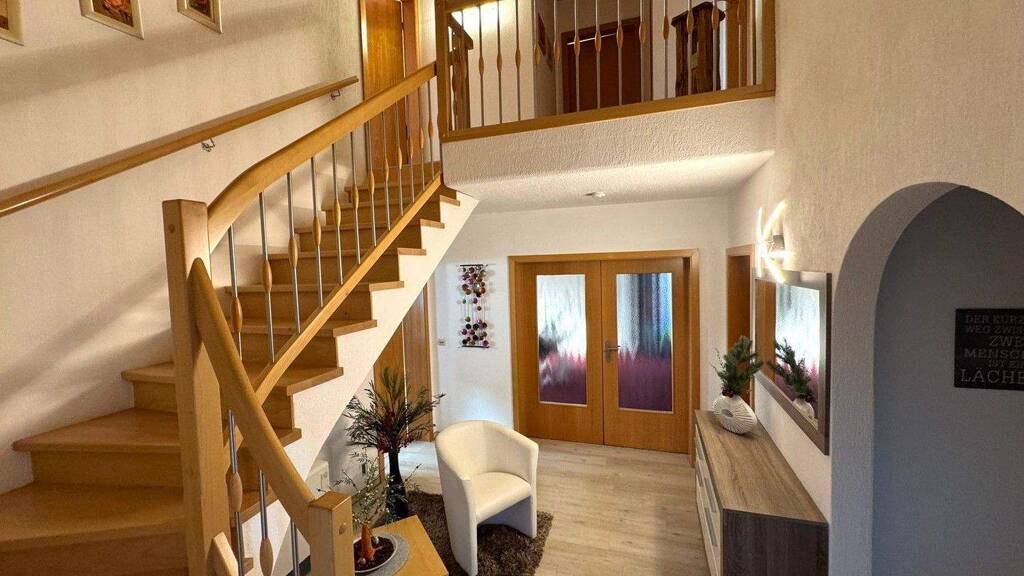 Dieses Einfamilienhaus aus 1999 überzeugt mit ca. 140 m² Wohnfläche, sehr guter Substanz und einem außergewöhnlich gestalteten Grundstück von rund 1.410 m². Großzügige, helle Räume, zwei Bäder, ein Kamin und mehrere, teils gemütlich überdachte Terrassen schaffen ein Wohngefühl mit Qualität und Komfort. Der liebevoll angelegte Designgarten setzt ein echtes Highlight. Absolut gepflegt, energieeffizient und sofort nutzbar - eine Immobilie, die Raum für Alltag, Entspannung und langfristige Wohnperspektiven bietet.