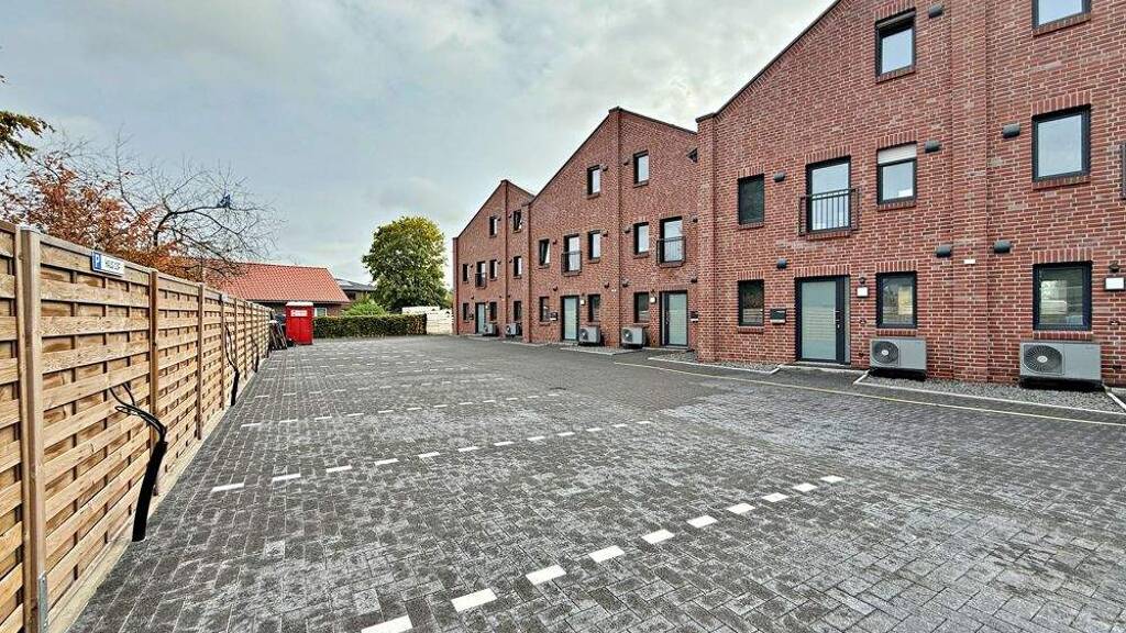 Hochwertige Fliesen- und Vinylböden, weiße Türen und frisch gestrichene Wände unterstreichen das gepflegte Gesamtbild. Jedes Haus ist mit Wärmepumpe, Photovoltaikanlage und dezentraler Lüftungsanlage ausgestattet. Ein Pkw-Stellplatz gehört zur Einheit, zudem stehen ein gemeinschaftlicher Fahrradraum und ein zentraler Müllraum zur Verfügung.