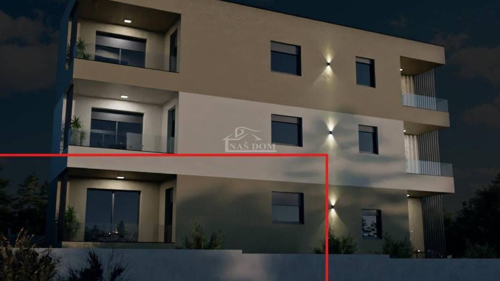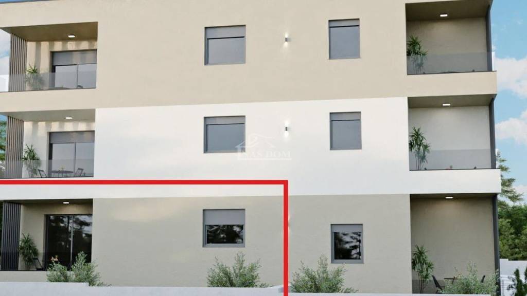 Sibenik, Njivice verkauft eine zweizimmerige Wohnung im Erdgeschoss des Gebäudes mit der Bezeichnung A1, mit einer Fläche von 73,60 m2, die besteht aus: Flur, Badezimmer, zwei Schlafzimmern, Küche mit Essbereich und Wohnzimmer, Terrasse, Garten mit einer Fläche von 116 m2 sowie einem Parkplatz vor dem Gebäude. Die Wohnung ist nach Südosten ausgerichtet und bietet einen schönen Blick auf die Stadt und die Stadtfestungen. Die Wohnung kann sowohl zum Wohnen als auch zur Vermietung genutzt werden.