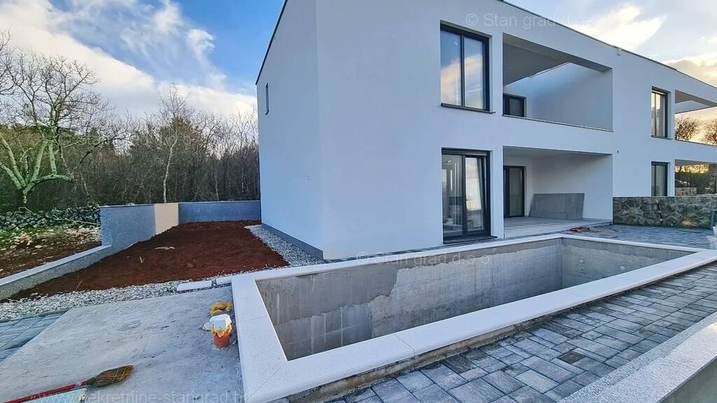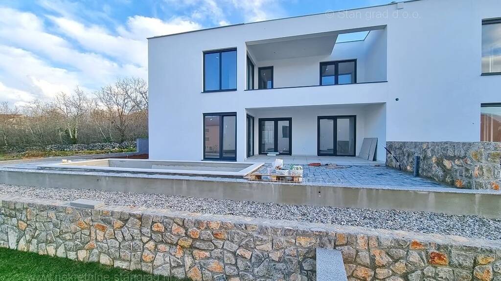 Aus dem hervorragenden Immobilienangebot der Agentur Stan Grad Immobilien im entwickelten und fortschrittlichen Kvarner sticht ein sehr schönes Haus in der hochwertigen und begehrten Küstenregion der Adria, der Insel Krk, hervor. Dieses attraktive Anwesen befindet sich in hervorragender Lage nahe dem Zentrum der berühmten Touristenstadt Malinska. Strukturell handelt es sich um ein zweistöckiges Haus. Das modern gestaltete Haus umfasst Nutzflächen auf insgesamt 2 Etagen. Das Anwesen umfasst eine Gesamtfläche von 143 m2. Dieser Bereich im Erdgeschoss umfasst die Eingangshalle, Toilette, Schlafzimmer, Küche mit Esszimmer, Wohnzimmer mit Zugang zur Terrasse und zum Garten. Im ersten Stock der Immobilie befinden sich 3 Schlafzimmer, jeweils mit eigenem Bad und Ausgang zum Balkon. Der Mehrwert dieser gesamten Anlage liegt im Garten mit Swimmingpool und Sonnendeck. Im Hof ??des Anwesens gibt es einen Platz, der zum bequemen Abstellen von zwei Fahrzeugen eingerichtet ist. Darüber hinaus ist es wichtig zu beachten, dass das Haus einen sehr schönen offenen Blick auf das Meer bietet. Die geplante Fertigstellung der Arbeiten wird für Mitte 2025 erwartet. Diese Immobilie unterliegt der Mehrwertsteuer. Der Verkäufer dieses Hauses garantiert eine vollständige und ordnungsgemäße Dokumentation sowie eine einfache Übergabe der Immobilie an den Käufer. Sie sind herzlich willkommen auf unserer goldenen Insel Krk und in unserer Kvarner-Filiale. Neben der Suche, Besichtigung und Präsentation des Hauses unterstützt das Expertenteam unserer Agentur den Immobilienkäufer gerne bei der Eintragung des Eigentums im Grundbuch sowie bei der Übertragung der Nebenkostenabrechnungen auf seinen Namen.
