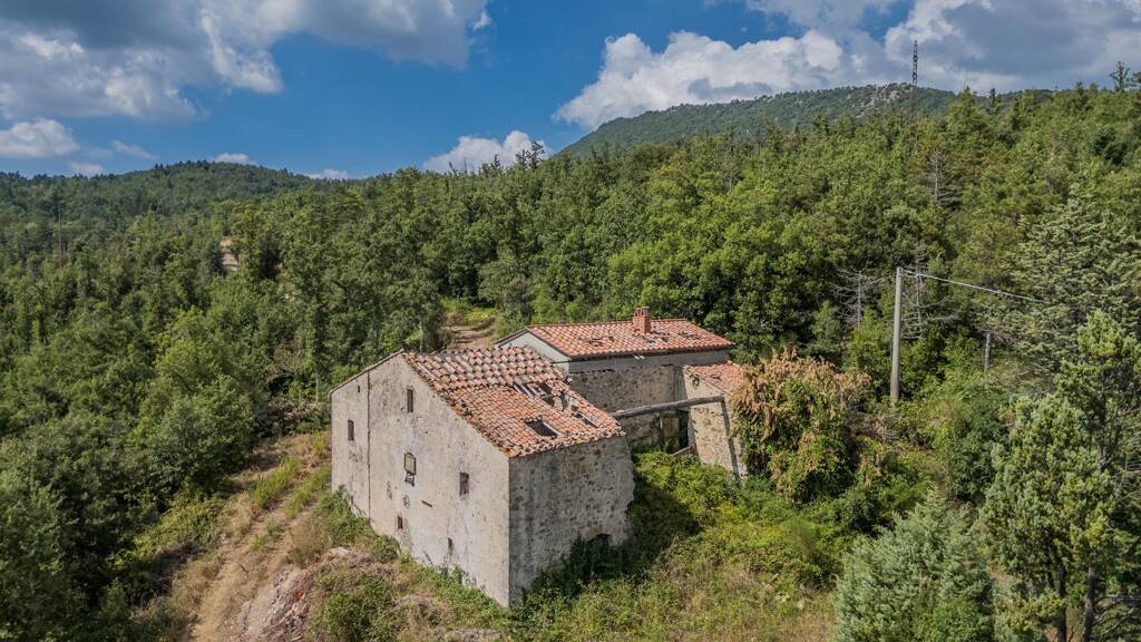 Im Haupthaus sind bereits 60 m² saniert, die verbleibenden 500 m² warten nur darauf, nach Ihrem Belieben umgestaltet und saniert zu werden. Eine Fülle von Möglichkeiten steht Ihnen hier offen, um dieses historische Gebäude liebevoll zu neuem Glanz zu erwecken. Abgesehen vom Haupthaus gibt es zwei weitere Gebäude, eines mit 240 m² und das andere mit 160 m². Beide Gebäude sind momentan in einem Zustand, der Sanierung oder Neubau erfordert. Doch auch hier liegt das Potenzial auf der Hand: Beide zusätzlichen Bauten können nach Belieben gestaltet und in etwas Einzigartiges verwandelt werden. Die Lage des gesamten Anwesens ist einfach außergewöhnlich. Es liegt schön auf einer Anhöhe und bietet einen exklusiven und ununterbrochenen Blick auf die umliegende Natur. Die beeindruckende Landschaft, die das Anwesen umgibt, scheint unendlich zu sein und bietet viele Möglichkeiten für Spaziergänge, Erkundungen oder einfach nur für die Betrachtung der Natur. Das Grundstück selbst ist größtenteils mit einem Wald bedeckt, der einen wertvollen Baumbestand bietet. Dieser private Wald könnte Ihr eigener Ruhepol sein, ein Raum für Erholung und Meditation, ohne die Notwendigkeit, Ihr Eigentum zu verlassen. Darüber hinaus verfügt das Grundstück über eine eigene Wasserquelle, was nicht nur praktisch, sondern auch ein gewisses Maß an Freiheit und Unabhängigkeit von externen Wasserversorgern bietet.