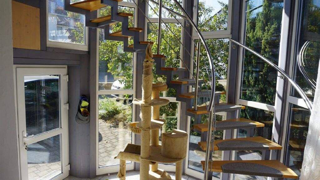 In den vergangenen Jahren wurden bereits umfangreiche Renovierungsarbeiten vorgenommen, als besonderer Blickfang wurde dabei der Eingangs- und Wohnbereich gestaltet. Im Erdgeschoss befinden sich drei Zimmer, ein Bürobereich und ein Bad. Über die Wendeltreppe gelangen Sie in das Obergeschoss mit einem einladenden und offen gestalteten Wohnbereich. Hier erwartet Sie das Wohnzimmer mit Balkon, das Esszimmer, die Küche und ein Bad, das erst vor wenigen Jahren eingebaut wurde. Zusätzlich haben Sie auf dem Dachboden noch viel Abstellraum.