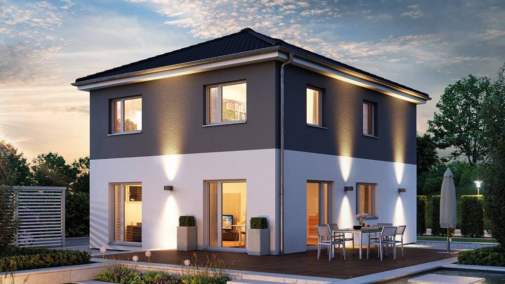 Ausgehend von einem modernen Einfamilienhaus im Stil einer Stadtvilla wurde dieses Traumhaus geplant. 140m² wurden sinnvoll auf Erd- und Obergeschoss verteilt. Im Erdgeschoss haben wir neben Gäste-WC mit Dusche und HWR einen großen lichtdurchfluteten Wohn- Essbereich mit offener Küche für Sie geplant. Hier findet sogar eine Kochinsel Platz. Die Küche könnte aber auch geschlossen werden. Ein weiterer Raum kann als Fernseh-, Gäste- oder Arbeitszimmer genutzt werden. Über eine gerade Treppe, die geschlossen werden kann und somit für zusätzlichen Stauraum sorgt geht es ins Obergeschoss. Im Obergeschoss befinden sich drei sehr großzügige Zimmer. Das Schlafzimmer der Eltern ist mit einer schönen Ankleide ausgestattet. Auch das Bad der Familie ist hier zu finden. Die moderne Aufteilung bietet genug Platz für die bodengleiche und begehbare Dusche und eine zusätzliche Badewanne. Der nicht ausgebaute Spitzboden bietet schönen Stauraum. Wenn Sie noch mehr Platz benötigen können Sie das Haus auf Wunsch gegen Aufpreis auch unterkellern, was Ihnen weiteren Lebens-Raum bietet. Natürlich können Sie das Haus auch ganz anders gestalten und Grundriss sowie Hausoptik auf Ihre persönlichen Bedürfnisse zuschneiden lassen; denn ein Hanse-Haus passt sich Ihnen an - nicht umgekehrt. Nähere Informationen - insbesondere zu den bereits im Grundpreis enthaltenen Hanse-Leistungsgarantien - erhalten Sie unter: www.hanse-haus.de Hausabbildung enthält Sonderwünsche