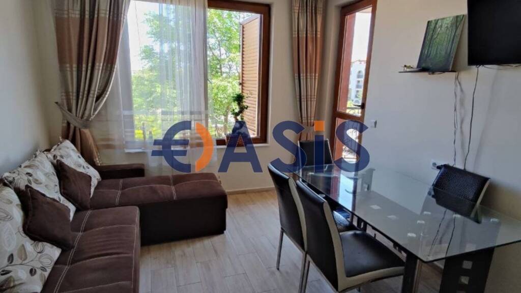 Die Wohnung verfügt über einen äußerst funktionalen Grundriss - Flur, Wohnzimmer mit integrierter Küche, 2 Schlafzimmer, Badezimmer mit Dusche, WC und Waschmaschine, Terrasse. Das Anwesen wird komplett möbliert und ausgestattet verkauft.