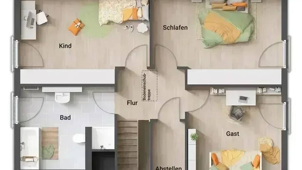 Das Mitwachshaus Flair 148 ist für alle Lebensphasen gut gerüstet. Es kann sowohl im Erdgeschoss, als auch im Dachgeschoss ein weiteres Zimmer eingeplant werden. Diesen zusätzlichen Platz können Sie bei Bedarf für ein weiteres Kinderzimmer oder ein Büro nutzen.