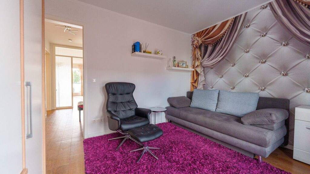 Die Wohnung bietet zudem ein modernes Wannenbad mit Duschzugang und ein zusätzliches Gäste-WC. Im Badezimmer sorgt eine Fußbodenheizung für angenehme Wärme. Der gesamte Wohnbereich ist mit hochwertigem Vinylboden ausgestattet, der sowohl optisch ansprechend als auch pflegeleicht ist. Die dreifach verglasten Fenster bieten ausgezeichnete Schalldämmung und eine hervorragende Energieeffizienz.