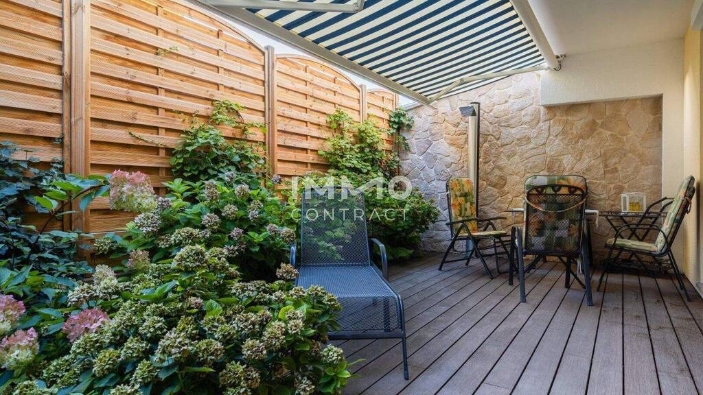 In einer kleinen Wohnhausanlage mit nur 7 Wohneinheiten wird eine fast uneinsichtige 3-Zimmerwohnung mit insgesamt 235 m² Freifläche zum Kauf angeboten, in der sich das Heimkehren wie das Ankommen im Urlaub anfühlt.