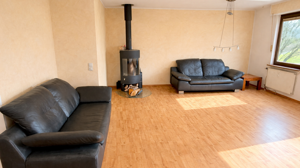 Sie betreten das Zweifamilienhaus über die zentrale Haustüre, anschließend gelangen Sie durch Ihren eigenen Eingang ist das private Treppenhaus. Auf der 1. Etage befindet sich der große Wohnraum mit ca. 30 Qm Wohnfläche, nebst Küche, Gäste WC (mit Platz für die Waschmaschine) und praktischem Abstellraum. Das Wohnzimmer verfügt über einen modernen Kamin, dieser sorgt für eine angenehme Wärme.