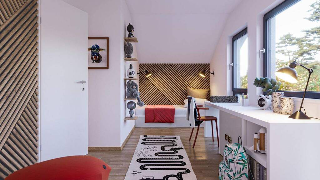 .Natürliche Materialien: Hochwertige, gesunde und natürliche Baustoffe schaffen eine warme und einladende Atmosphäre. .Lichtdurchflutete Räume: Große Fensterflächen sorgen für eine optimale Nutzung von natürlichem Licht und schaffen eine offene, luftige Umgebung. .Durchdachte Raumgestaltung: Die klare und funktionale Raumaufteilung ermöglicht eine flexible Nutzung und schafft ein harmonisches Gleichgewicht. .Sicherheitssystem: Modernste Sicherheitstechnologien, einschließlich Überwachungskameras und intelligenter Türschlösser, bieten ein beruhigendes Gefühl der Sicherheit.