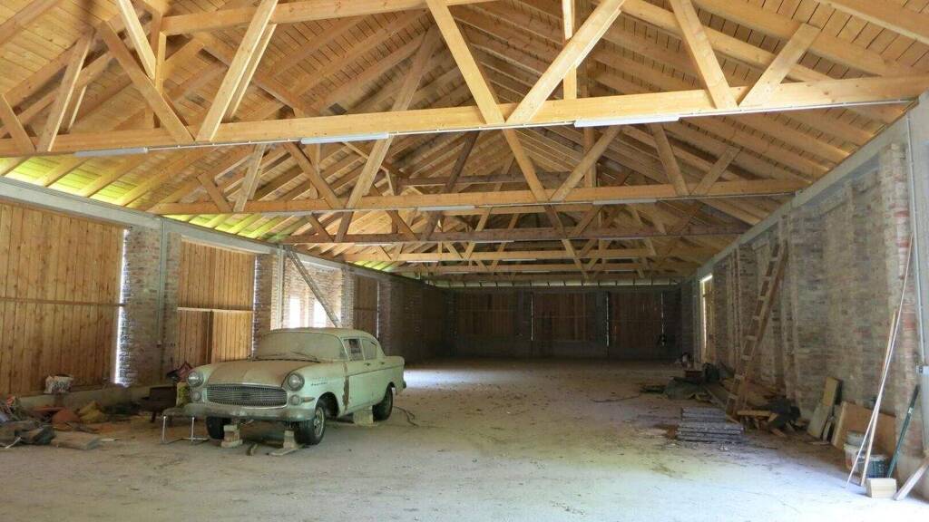 Detailangaben: + anmietbare Fläche - ca. 400 m² + Länge - ca. 45 m + Breite - ca. 12 m + Traufenhöhe - ca. 4 m + Firsthöhe - ca. 8 m + Boden - Beton