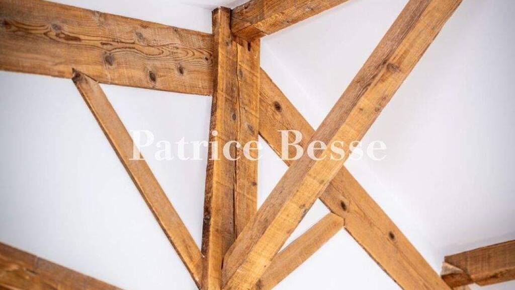 The main house It is accessed via a glazed porch with a terracotta tiled floor and a laundry room that provides storage space. On the right, the dining room, then the kitchen, provide a glimpse of the pool and garden through large picture windows. The warm tones of the floor are reminiscent of country houses in the south of France, while the clean lines of the kitchen are resolutely contemporary. The furniture, which is plain yet robust, evokes a simple art of living, where the pleasure of shared meals and long discussions can be imagined. To the right of the kitchen, a corridor leads to a first bathroom, two large bedrooms and a study overlooking the pool, adjoining a workshop for handicrafts and storage. On the left, a space opens up that includes a first living room, the left wall of which, with a series of small recessed shelves, reveals a staircase leading up to a vast bedroom with an exposed, solid wood framework. Made up of an intricate interweaving of carefully assembled beams and rafters, it forms an elegant triangular structure. The outstretched lines of the framework, both powerful and aerial, direct the eye towards the ridge, the meeting point of strength and balance. Back in the first living room, a staircase leads down to a second living area, which opens out under a beamed ceiling. The space, subtly lowered, is arranged around an imposing fireplace clad in old bricks, whose glowing hue contrasts with the wooden floor and warmly tinted floor tiles. The interplay of textures - wood, brick, metal and plants - gives the whole a sense of depth. Transom windows and wide picture windows let in soft light, filtered through the beams and lines of the balustrade. The white, slightly curving staircase breaks up the straight lines of the wall, accentuating the fluidity of the volumes. It leads to a large, light-filled 60 m² sleeping area, where the solid wood beams and white wood panelling blend in harmoniously with the light-coloured floor. This bedroom has a storage area and a private shower room tiled in travertine. Back in the second living room, a corridor on the left leads to two bedrooms with access to the pool, one of which has storage space and a bathroom. The swimming poolThe pool ...
