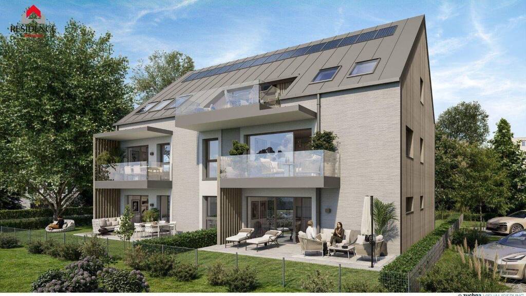 Bei den Bauprojekten von RESIDENCE Wohnbau setzt man auf Hochwertigkeit und Langlebigkeit. Diese Philosophie ist schon beim ersten Schritt in den Wohnraum spürbar, wenn man den edlen Landhausdiele-Parkettboden aus Eiche betritt. In den zeitlos schönen Sanitärräumen sind großformatige Fliesen aus Feinsteinzeug verlegt. Die Bäderausstattung ist geprägt von Qualitätsmarken und modernem Design. Dreifach verglaste Kunststoff/Alu-Isolierfenster garantieren beste Wärmeisolierung und herrliche Ruhe. Die Räume sind angenehm hell durch zahlreiche Fenster im Inneren. Mit der Fußbodenheizung mit Einzelraumsteuerung (in Bad- und Wohnräumen) sind effizientes Heizen und ein optimales Raumklima ein Kinderspiel. Nachhaltige Energiekonzepte zeigen sich zudem mit einer PV-Anlage am Dach.