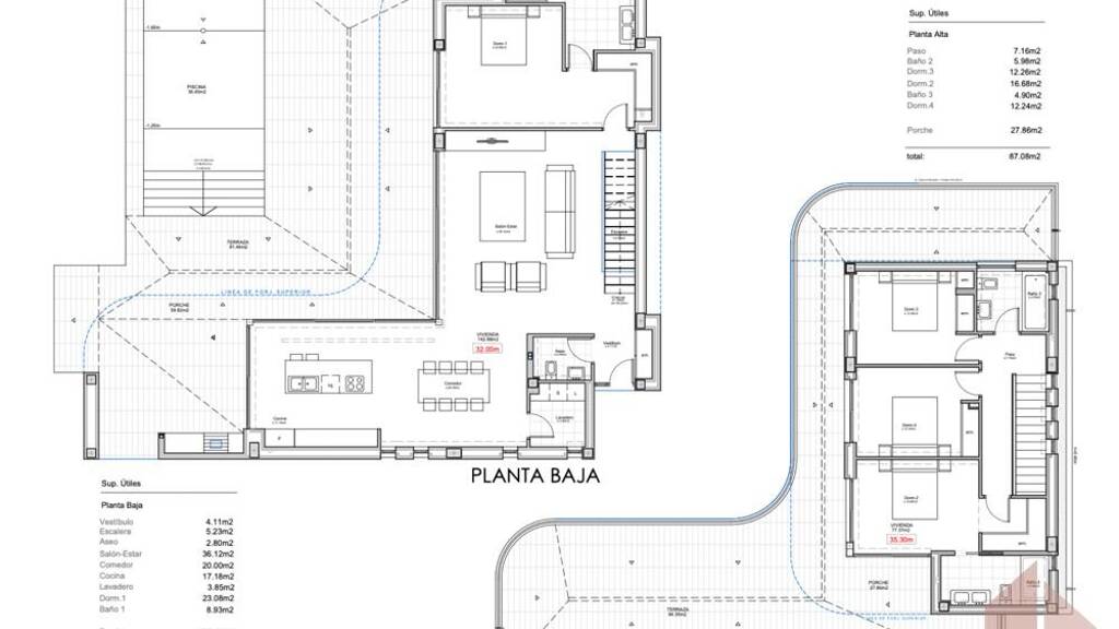 Die Villa ist auch mit den neuesten nachhaltigen Wohnkonzepten ausgestattet. Sie verfügt über ein fortschrittliches Luft-Wasser-Wärmepumpensystem, eine Fußbodenheizung und eine Klimaanlage mit Luftkanälen, die das ganze Jahr über eine effiziente Temperaturregelung ermöglichen. Das Haus ist mit Hochleistungsfenstern und einer Isolierung ausgestattet, die sowohl Energieeffizienz als auch Komfort gewährleisten.