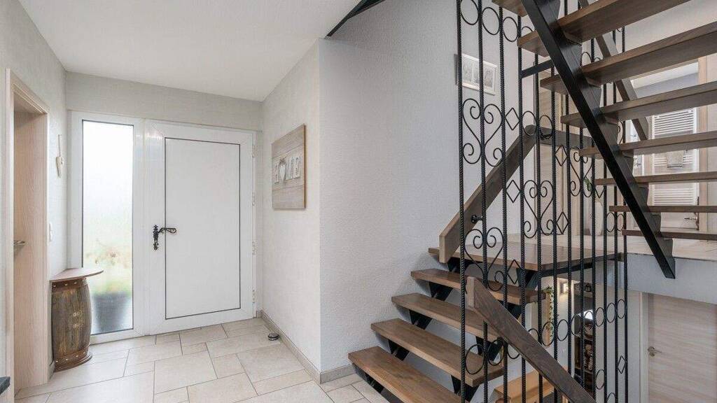 Fliesen- und Teppichböden prägen die Ausstattung. Zwei voneinander getrennte Terrassen in Süd-Ost- und Süd-West-Ausrichtung sowie ein gepflegter Garten bieten attraktive Außenbereiche. Neben der Garage stehen zwei weitere PKW-Stellplätze zur Verfügung. Glasfaseranschluss ist vorhanden.