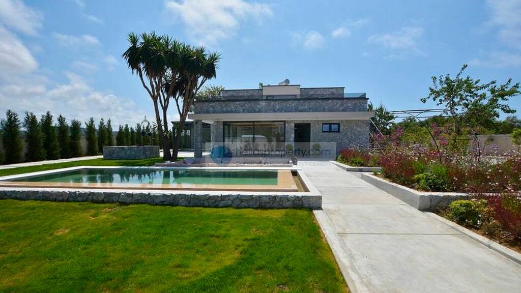 Moderne Villa mit Natursteinfassade im Bungalow-Stil ! Pool und Panoramaweitblick in Südost-Korfu