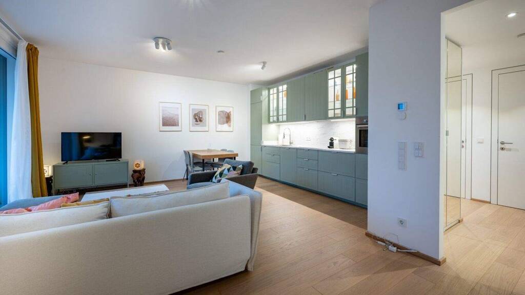 Deckenkühlung, Fußbodenheizung, ausgeklügeltes Smart-Home-System zur Steuerung der Wohnung, Landhausstil-Parketten und helles Feinsteinzeug im sanitären Bereich, moderne und edle Wohnkücheneinrichtung, elektrische Außenjalousien und vieles mehr erwartet Sie genau hier!