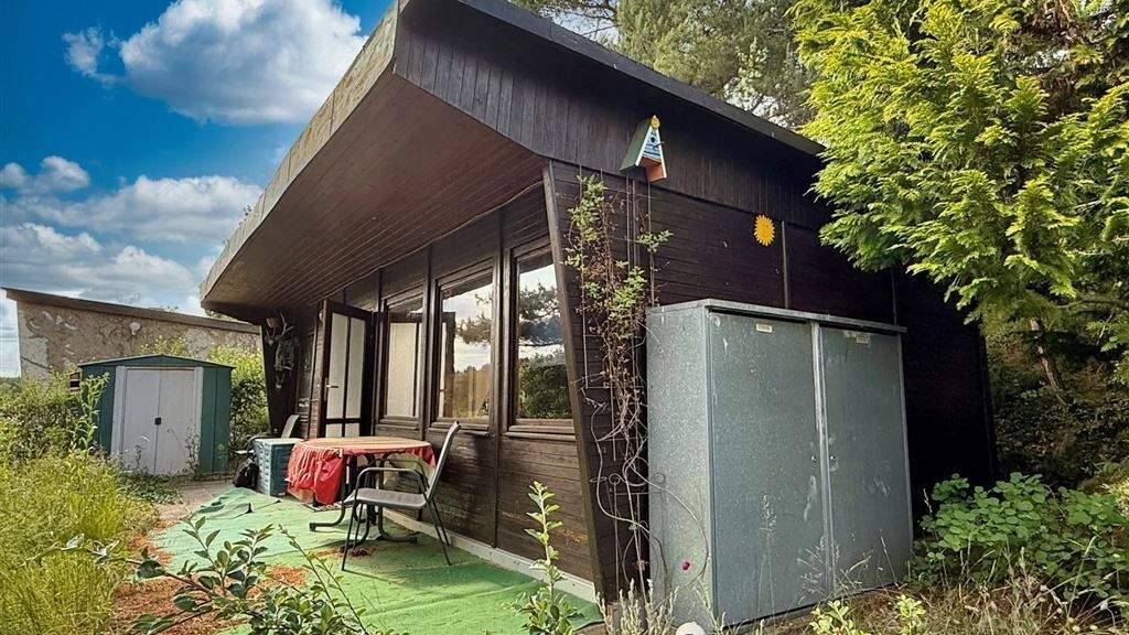 Zum Verkauf steht ein charmantes Wochenendhaus in ruhiger, grüner Umgebung. Ideal für Naturliebhaber, Ruhesuchende oder als Rückzugsort vom Alltag. Der Bungalow überzeugt durch seine gemütliche Holzverkleidung innen wie außen und bietet vielfältige Nutzungsmöglichkeiten auf kleinem Raum. Das Objekt verfügt über einen Wohn-/Schlafbereich mit großen Fenstern und natürlichem Lichteinfall, eine kompakte Küche mit Edelstahlspüle und Warmwasserboiler, ein Tageslichtbad mit Dusche und WC, sowie eine überdachte Terrasse mit Blick ins Grüne. Es gibt ein separates Gartenhaus (Pavillon) und einen verschließbaren Geräteschuppen. Die Ausstattung ist einfach, aber funktional. Mit etwas handwerklichem Geschick lässt sich der Bungalow in ein echtes kleines Schmuckstück verwandeln. Das Grundstück befindet sich in ruhiger, naturnahen Hanglage - ideal zum Entspannen und Abschalten. Einkaufsmöglichkeiten und die nächstgrößere Stadt sind in wenigen Autominuten erreichbar. Perfekt als Wochenenddomizil oder Ferienhaus.
