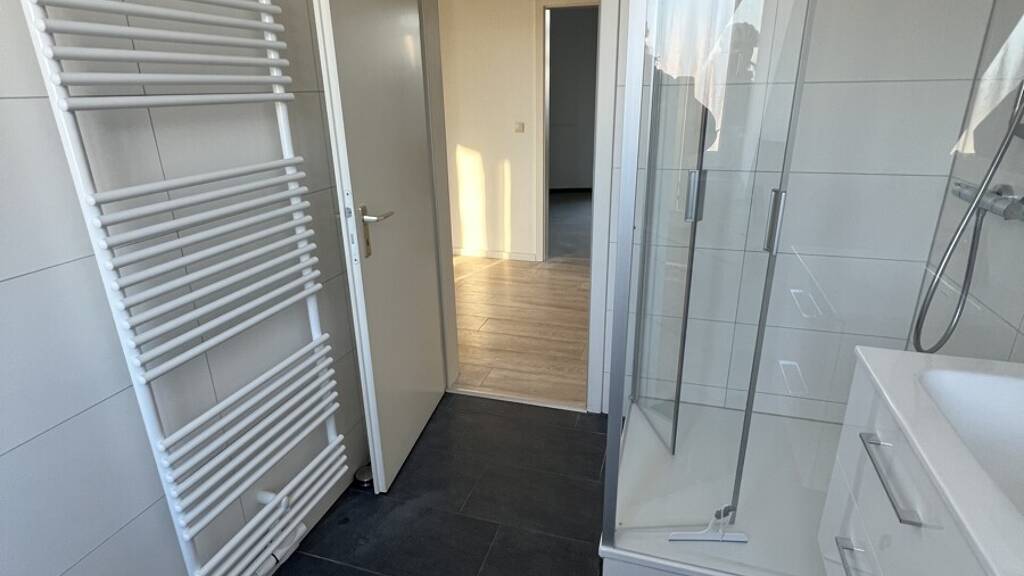 Das moderne Duschbadezimmer verfügt über ein Fenster und sorgt somit für eine angenehme natürliche Belüftung sowie viel Tageslicht.
