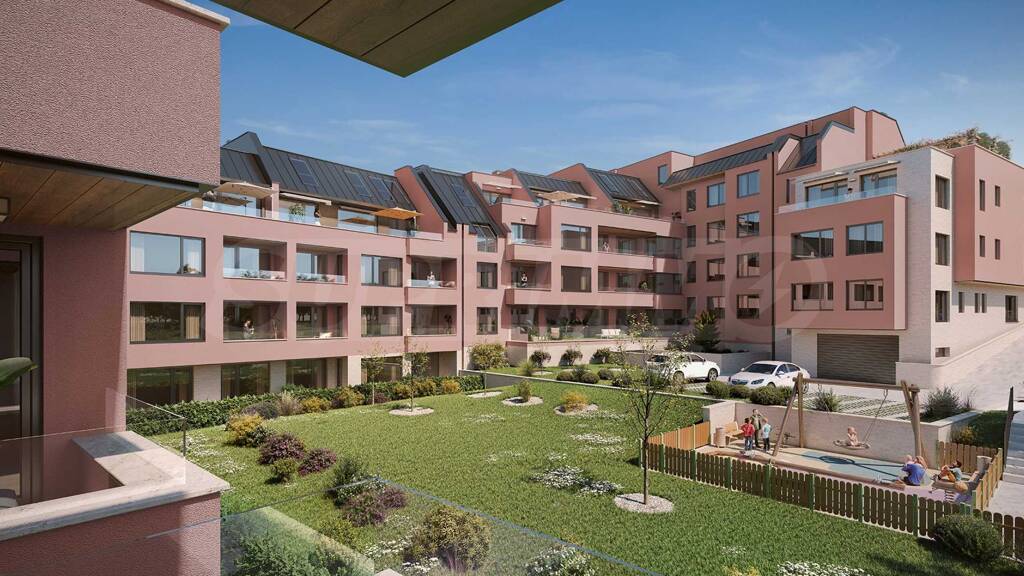 Der Komplex besteht aus vier Gebäuden, verteilt auf drei, vier und fünf Ebenen, mit einem gemeinsamen Innenhof, der reich bepflanzt wird. Die architektonische Vision ist modern, mit einer Natursteinfassade, und alle Materialien im Zusammenhang mit der Wärmedämmung entsprechen der Klasse A auf der Energiesparskala.