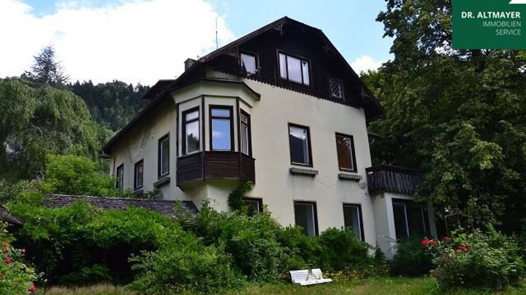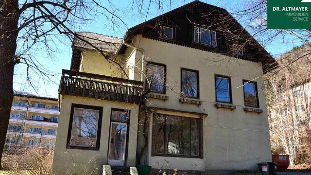 Die Liegenschaft, welche um 1911 errichtet wurde, besteht aus einer Arzt- Landhausvilla mit viel Platz und einem Zweithaus, welche aufgrund der Nutzungsdauer eine Auffrischung durch Renovierung benötigen. Das Haupthaus besteht aus Keller, EG, sowie zwei Obergeschosse. Das Zweithaus welches als Arztpraxis verwendet wurde, besteht aus dem Erdgeschoss mit einem Wintergarten, Aufenthalsraum mit Sauna und einem Keller, in dem die Ölzentralheizungsanlage samt dem Öllager untergebracht ist, sowie einem lichtdurchflutendem Obergeschoss. Im vergangenen Jahr wurde zusätzlich die Zuleitung für die Fernwärme errichtet.