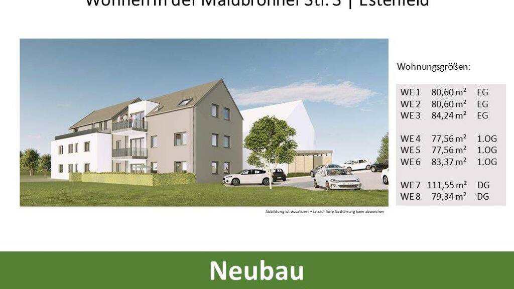 Objektbeschreibung In der Gemeinde Estenfeld bei Würzburg entstehen 8 Neubauwohnungen inklusive einer Penthousewohnung mit durchdachten Wohnungsschnitten und einzigartigem Wohnkomfort.