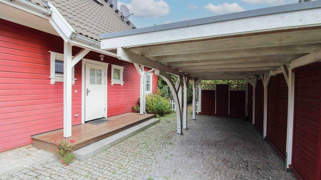 Das Haus ist technisch zeitgemäß ausgestattet: Solarpanels auf dem Dach unterstützen die Energieeffizienz. Eine moderne Alarmanlage sowie drei Überwachungskameras gewährleisten Sicherheit. Ein elektrisches Einfahrtstor führt zu zwei Carport-Stellplätzen und einem zusätzlichen Außenstellplatz. Obwohl nicht unterkellert, stehen ein Anschlussraum, eine Kammer, Nebengelasse auf dem Grundstück sowie großzügiger Stauraum im Dachboden zur Verfügung.