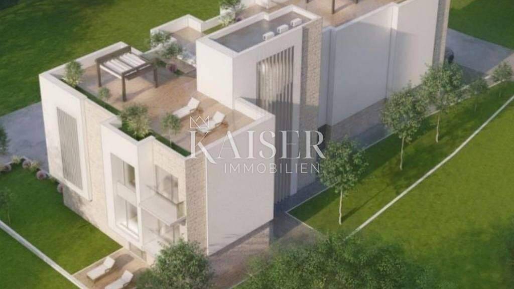 Kaiser Immobilien präsentiert: Moderne Maisonette-Wohnung mit privatem Garten und Meerblick Zum Verkauf steht eine moderne Maisonette-Wohnung im Bau, mit einer Gesamtfläche von 76,05 m², gelegen im ruhigen dalmatinischen Ort Sveti Petar, zwischen Zadar und Biograd na Moru, ideal für Urlaub und Leben am Meer. Die Wohnung liegt nur 200 Meter vom Meer entfernt, sodass Sie die saubere Meeresluft genießen und schnell zum Strand gelangen können. Die Wohnung erstreckt sich über zwei Etagen und bietet eine funktionale Raumaufteilung. Das Erdgeschoss mit einer Gesamtfläche von 34,44 m² besteht aus einem Eingangsbereich, einem großzügigen Wohnbereich mit offener Küche und Esszimmer, einer Toilette und einer Treppe, die in den ersten Stock führt. Im ersten Stock befinden sich zwei gemütliche Schlafzimmer, zwei Badezimmer und ein Flur, der alle Räume verbindet. Neben dem abgeschlossenen Wohnbereich verfügt die Wohnung auch über Zusatzbereiche, die für zusätzlichen Komfort und Funktionalität sorgen. Es gibt eine Loggia, eine überdachte Terrasse und einen privaten Gartenbereich, perfekt, um das Leben im Freien zu genießen. Zur Wohnung gehört außerdem ein PKW-Stellplatz. Die Wohnung ist mit einer Fußbodenheizung ausgestattet, die das ganze Jahr über für eine angenehme Temperatur sorgt. Es wurde Keramik höchster Qualität verwendet und hochwertige PVC-Tischlerei sorgt für hervorragende Wärme- und Schalldämmung und gewährleistet Ruhe und Privatsphäre. Die Bauarbeiten beginnen im März 2025 und werden im April 2026 abgeschlossen sein. Für die Immobilie liegen alle erforderlichen Unterlagen vor, und die Eigentumsverhältnisse sind geregelt. Layout: Erdgeschoss - 34,44 m² Eingangsfläche - 2,64 m² Wohnzimmer + Esszimmer + Küche - Geräumiges Offenes Konzept von 28,00 m² Toilette - 1,80 m² Treppe - 1,66 m² Erster Stock - 32,42 m² Flur - 5,23 m² Räume 1 - 10,62 m²). Bedeckte Terrasse - 3,55 m² (berechnet 1,78 m²) Garten - 6,50 m² (berechnet 0,65 m²) Parkfläche - 14,25 m² (berechnet 2,85 m²). für Liebhaber der Natur, Meeresaktivitäten und eines ruhigen Lebens, aber auch perfekt an größere Städte angebunden: Zadar - 19 km, Biograd na Moru - 12 km, Autobahn (A1, Ausfahrt Zadar II) - 15 km, Split - 130 km, Zagreb - 290 km. Diese Wohnung ist eine Kombination aus Luxus, Funktionalität und mediterranem Lebensstil - ideal als dauerhafter Wohnsitz, aber auch als Investition für den Tourismus. Für weitere Informationen und zur Organisation einer Tour kontaktieren Sie uns bitte! Telefon: 00385992510230 E-Mail: marijana.papic@kaiser-immobilien.hr