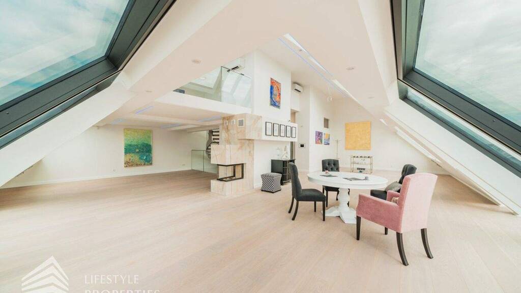 Diese traumhafte Wohnung besteht aus einem Obergeschoß, einem Dachgeschoß sowie einer Dachebene die mit einem wohnungsinternen Lift oder über eine Treppe miteinander verbunden sind. Sie betreten das Obergeschoß durch den Vorraum auf dem sich der Treppenaufgang befindet sowie eine Garderobe und einen Wirtschaftsraum. Ebenso in diesem Geschoß befindet sich der Master-Bedroom mit eigenen Ankleidezimmer und einem en Suite Badezimmer und zwei weitere Schlafzimmer mit derselben Ausstattung. In den Nassräumen treffen Sie ausschließlich hochwertige Steinzeug Materialien sowie Hochglanzfliesen und modernste Sanitäreinrichtungen an.
