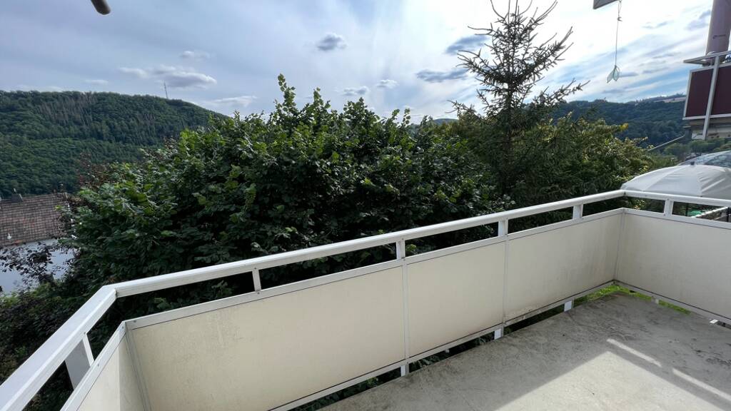 Diese großzügige Dreizimmerwohnung liegt im Souterrain eines gepflegten Mehrfamilienhauses. Durch die Lage am Hang hat sie zwei Balkone und eine schöne Aussicht auf die Burg Nassau.